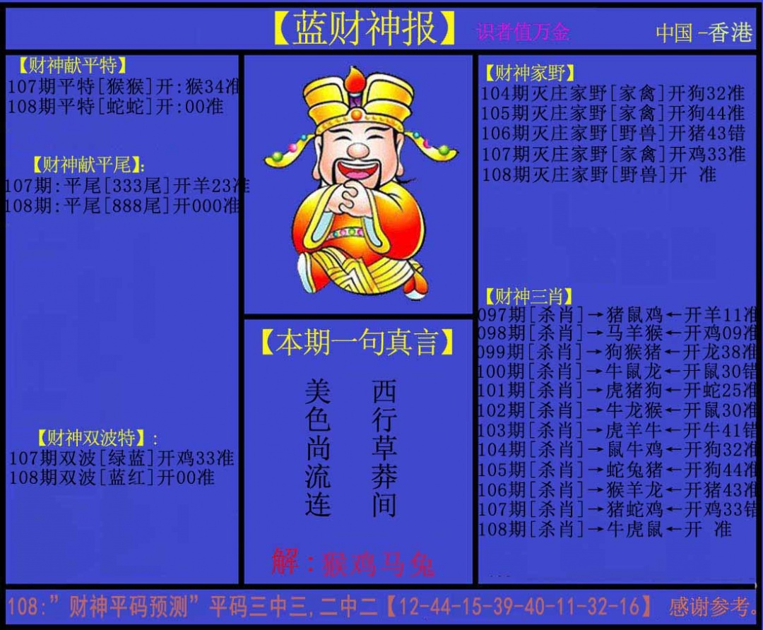| 主题 :108期:蓝财神 |