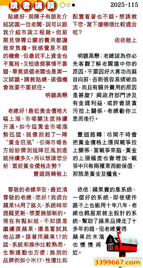 | 主题 :115期:彩民推荐〖貼信讀者論壇〗 |