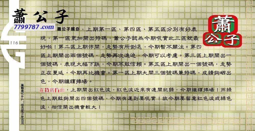 | 主题 :116期:六合皇金句/老总论码/萧公子/林大师/五行夺码/老总信箱截 |
