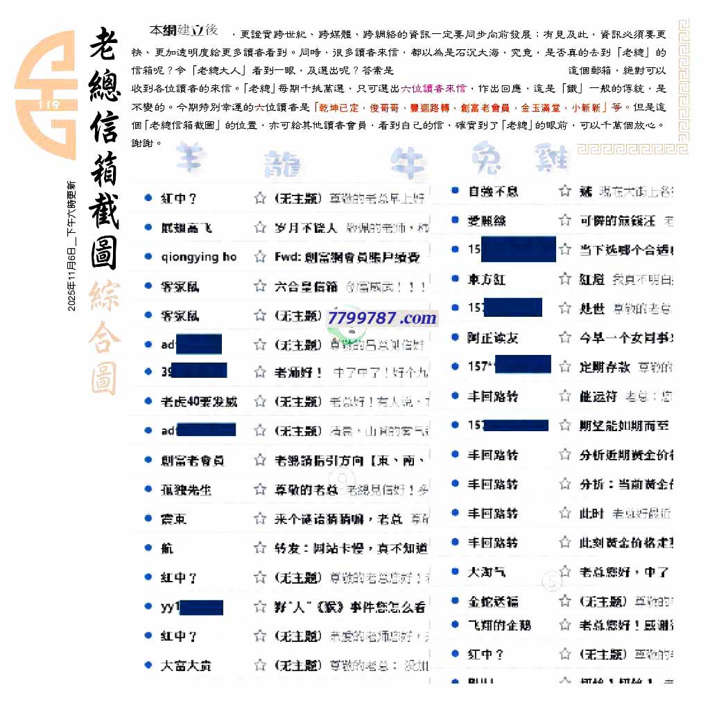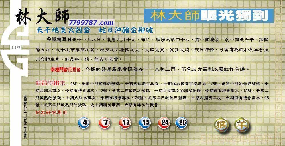 | 主题 :119期:六合皇金句/老总论码/萧公子/林大师/五行夺码/老总信箱截 |
