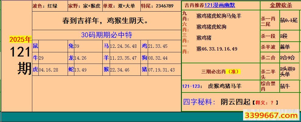 主题 :121期:小鱼儿30码期期中+幽默猜测