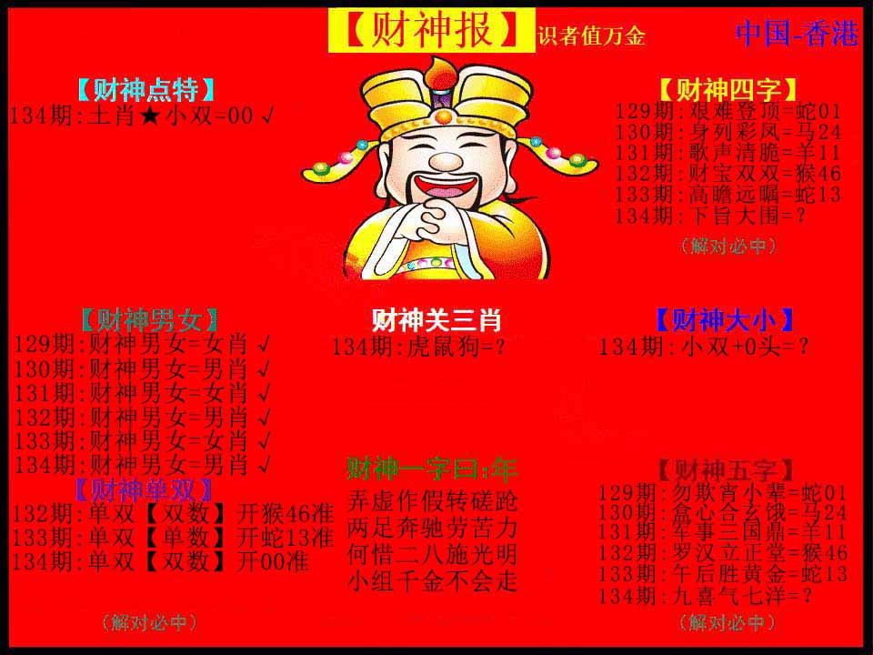 | 主题 :134红财神 |