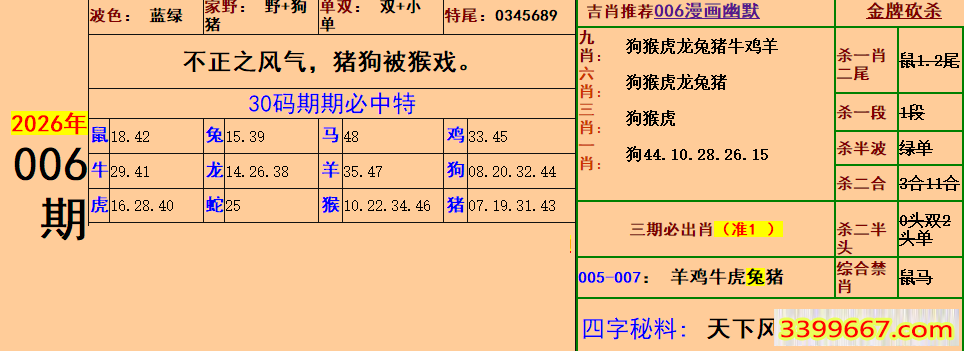 | 主题 :006期:幽默猜测玄机+30码期期中 |