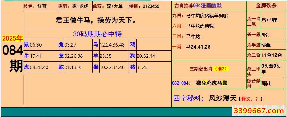 主题 :084期:小鱼儿30码期期中+幽默猜测