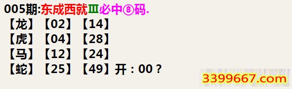 005期:东成西就Ⅲ必中⑧码