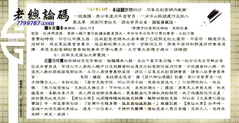 | 主题 :005期:六合皇金句/老总论码/萧公子/林大师/五行夺码/老总信箱截 |