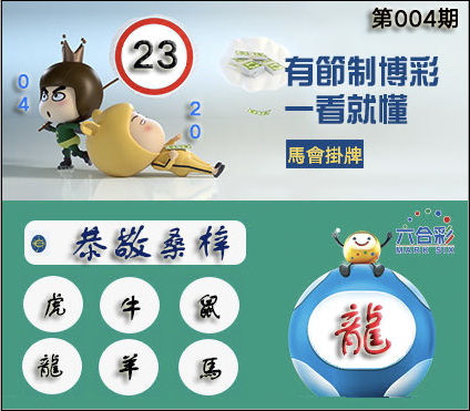 004期正版彩图挂:23 爆:龙 挂牌成语:恭敬桑梓 挂牌出肖:虎牛鼠龙羊马
